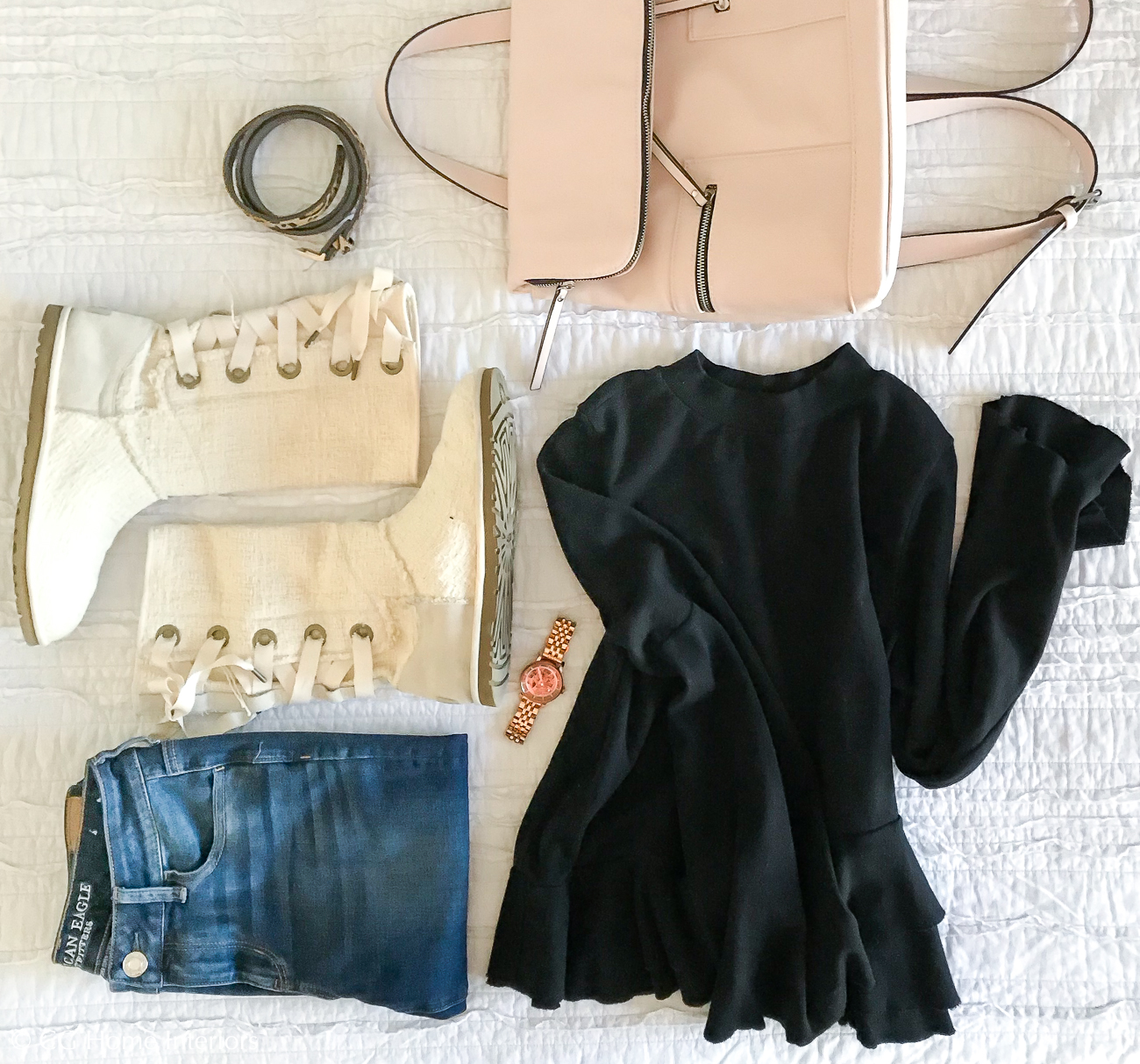 I can't really layer this outfit because it's uncomfortable with the bell sleeves so I'm hoping I don't freeze, but it's supposed to be warmer in Waco today and this long sleeve shirt is a little thicker so it should be fine.